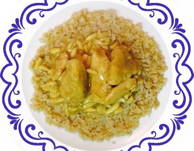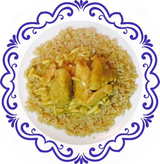 - Meanwhile prepare your serving plate with the rice, and when the chicken is finally ready place it on top and pour a generous quantity of the sauce over it.